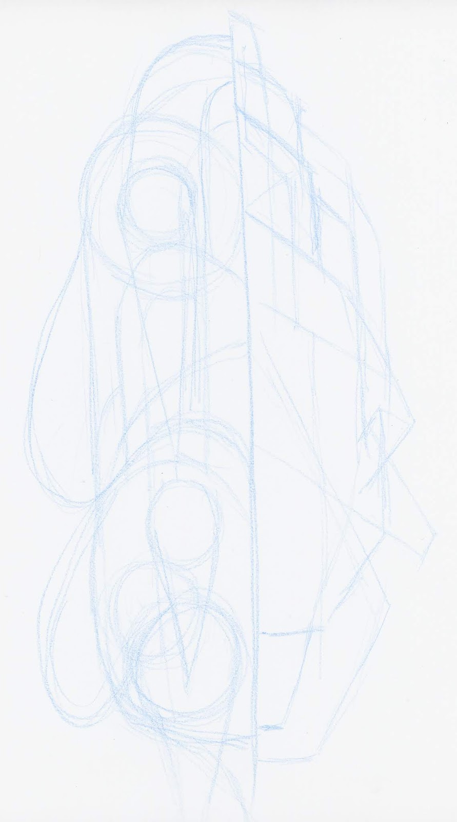 1. Start with a sketch with two different styles on each side of a center line and scan it.
